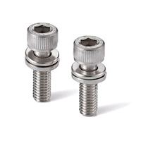 垫圈一体式带通风孔内六角圆柱头螺钉- 高强度不锈钢 ● 更容易从通风孔排出螺丝孔底部积气和弹簧垫圈间隙将钻孔内积气排出,支持真空装置的抽真空。● 螺栓抗拉强度为 1000 N/mm2,0.2% 保证载荷为 800 N/mm2。内置适合螺栓强度的硬度为 300 HV 或更高的平垫圈。 ● 保证载荷约为普通不锈钢内六角螺钉的 1.8 倍。因此,可以使用更小的螺杆直径和更少的数量来节省空间和减轻重量。● 螺钉中集成了平垫圈和弹簧垫圈,避免了脱落问题。● 无需安装垫圈。戴着手套的洁净室工作更容易。● 材质为SUS316L。它具有优良的耐腐蚀性。● 非磁性。